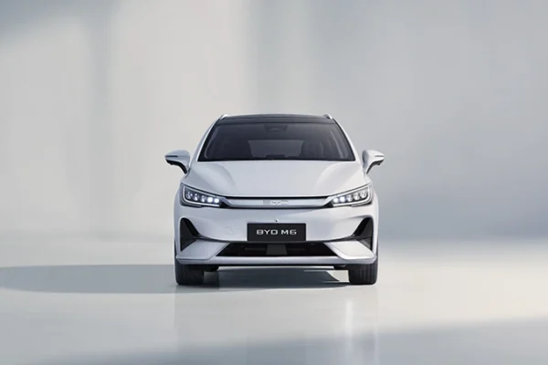 BYD M6, desain depan yang aerodinamis dan ramping mengoptimalkan aliran udara sekaligus mencerminkan kesederhanaan dan keanggunan estetika desain generasi baru BYD dengan perhatian terhadap detail yang teliti.